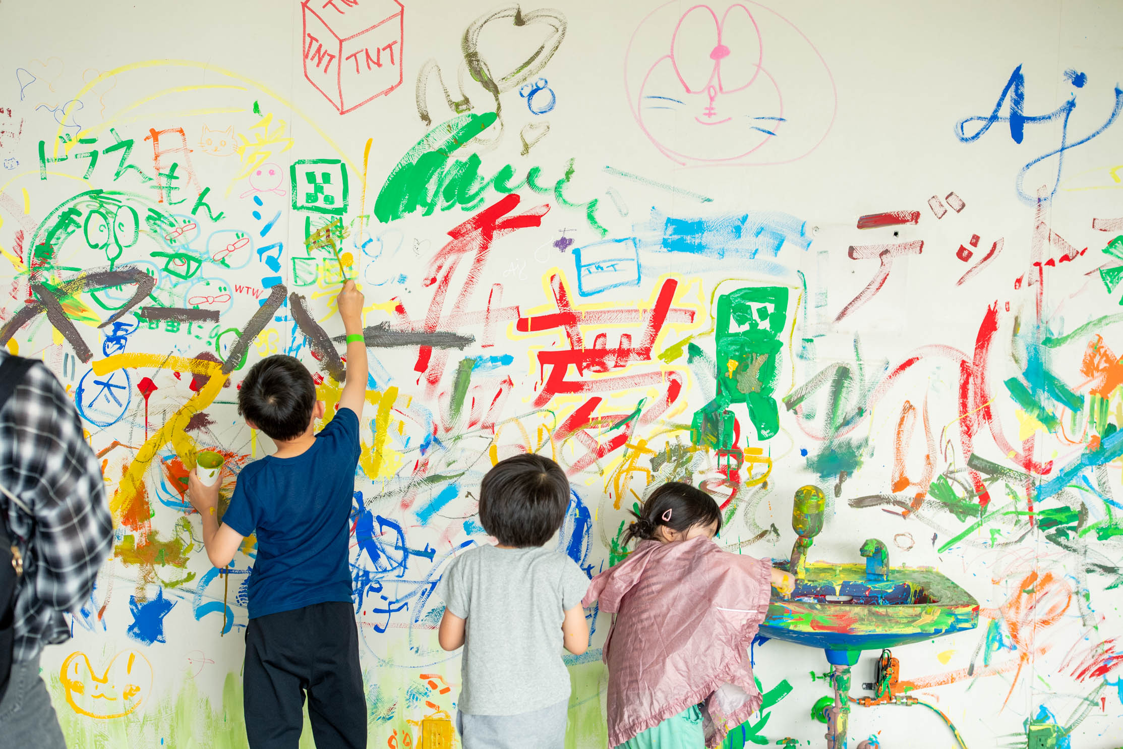 セルテの館内を開放し、絵具、ポスカ、ペンキなど様々な画材で自由に描ける特別空間。普段は決してできない“らくがき体験”。ここでは、子どもたちが主役です。